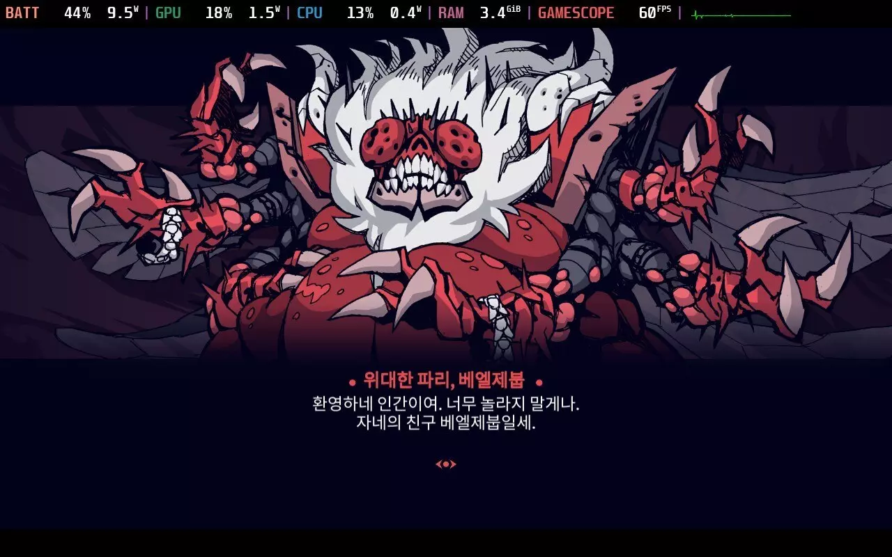 이제 다시 헬테이커를 실행하면 한글 패치가 적용된 것을 확인할 수 있습니다.