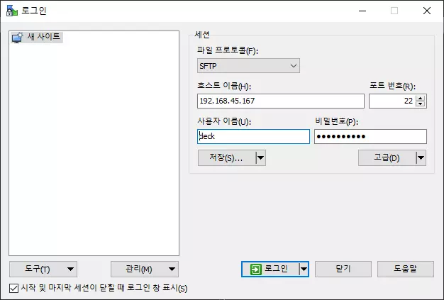 방금 녹색 버튼을 사용하여 WINSCP 다운로드를 설치했습니다. exe 파일을 설치하신 후 설치하시면 됩니다. 그리고 실행합니다.