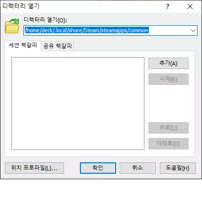 아래 스샷에서만 빨간 부분누른 후 /home/deck/.local/share/Steam/steamapps/common 기입.