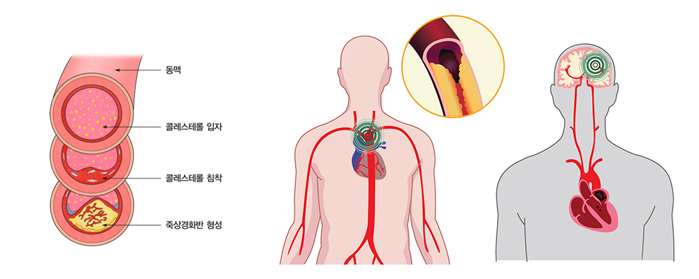 또한, 입술과 콜레스테롤이 계속 축적될 경우 혈관의 벽에는 혈관의 벽은 좁아질 수 있다.경화증은 혈관에 부착되어 탄력성을 잃었고 증상이 점차 발달하면 뇌졸중, 심근경색, 심근경색, 심근경색 등 심혈관질환을 일으킬 수 있다.고혈압의 원인