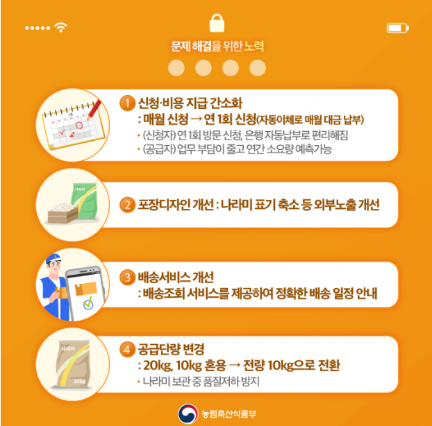 정부곡물(나라미쌀)환급지원금 신청기한은 매월 10월까지이며, 10일 이후에도 급여어류 이체 전날까지 신청 가능합니다.