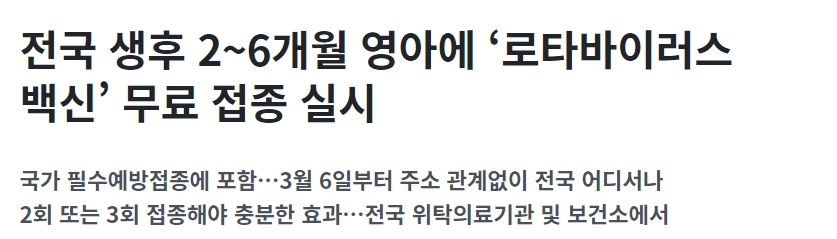 로타바이러스 무료 예방 접종곧 시작합니다(3월 6일 월요일부터).