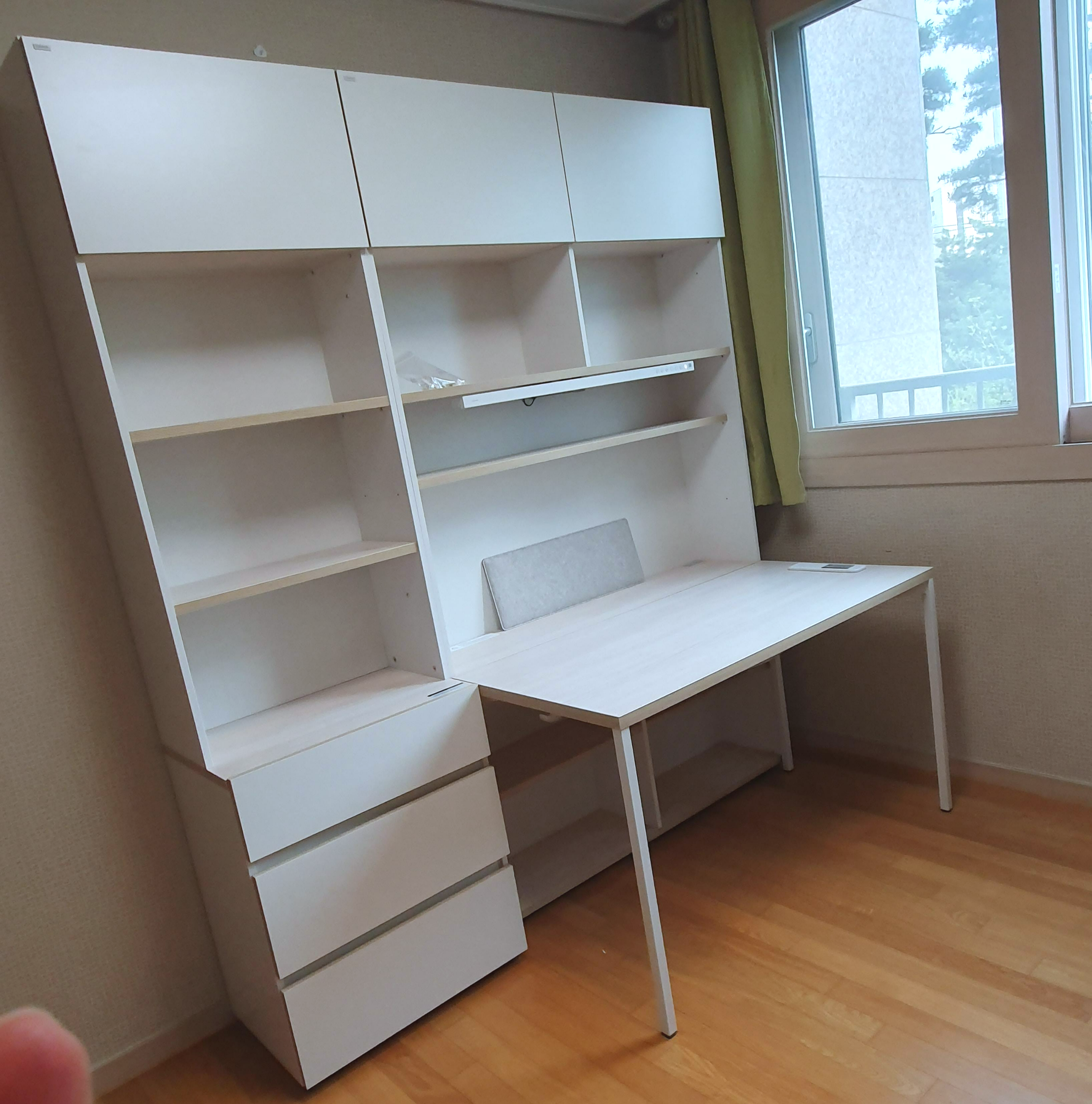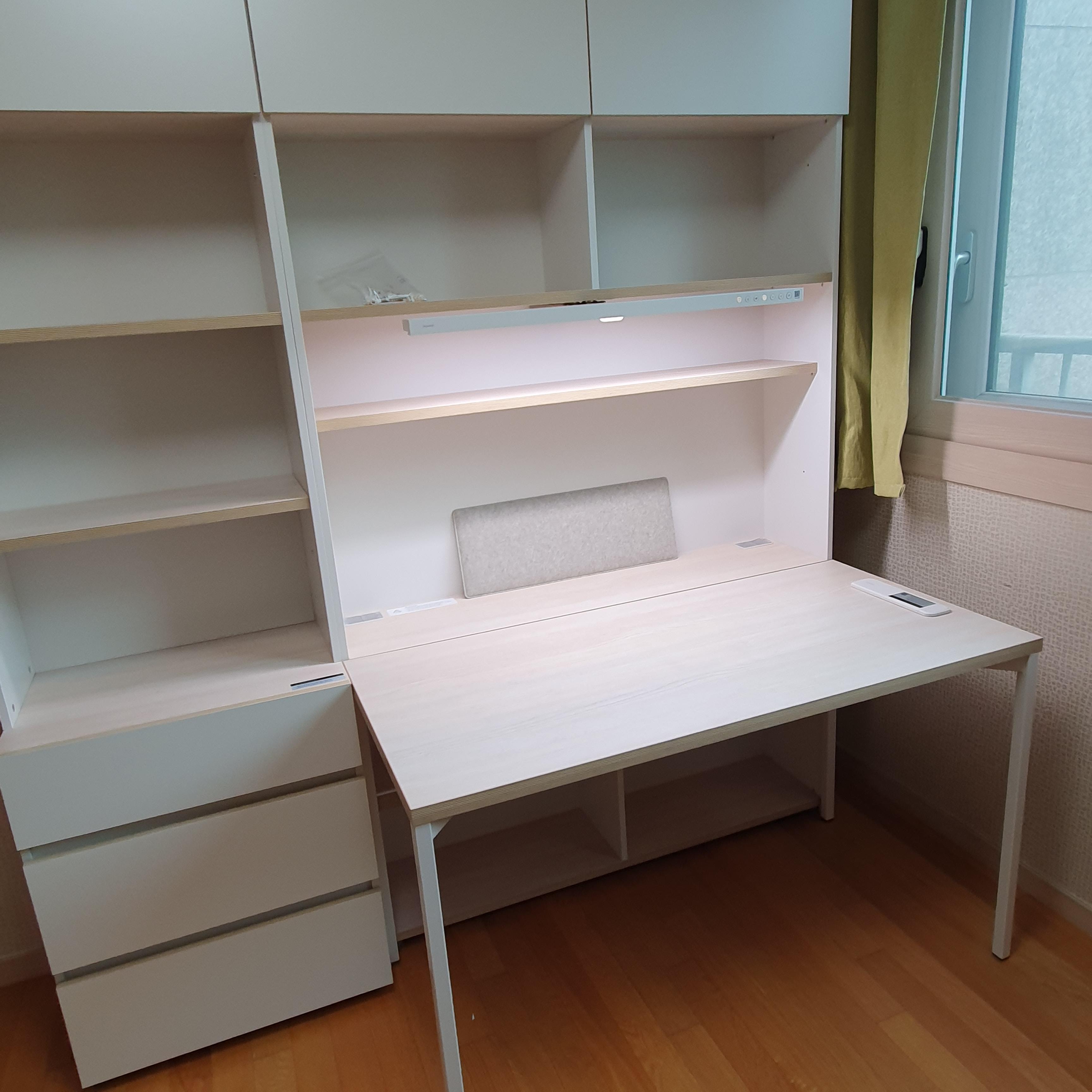 6단도어형 1200책상(조명, 콘센트 포함) + 6단도어형 600서랍형 책장으로 구매했어요.