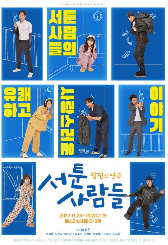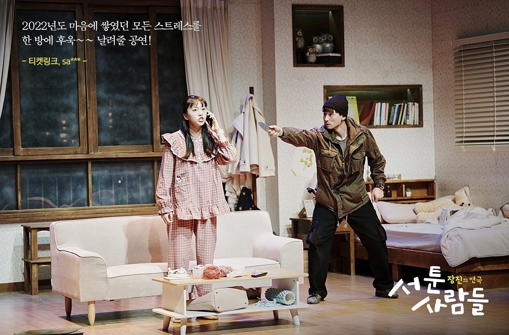 서툰 사람들’ (작곡, 연출: 장진무대, 소품: 고태민 조명: 나한수 음악, 음향: 김중우 의상: 오수현 분장: 오창렬 출연: 임 모윤, 최하윤, 안두호 제작: 장차, 박컴퍼니 극장: 예스24 무대 3관 별점: ★★★★★) 장진 감독의 작품이다. 1995년인가 2008년에 볼 땐 안 보려고 했는데 안 했으면 후회할 뻔 했어요. 110분 시간 가는 줄 모르고 정말 즐거웠어요. 30년 전 작품이 얼마나 재밌을 수 있는지!’낙타상자’,’빨간머리’,’써클’에서 만난 배우 최하윤이 이 공연을 선택하게 만들었다! 러브배우인데 19일까지라 다른 배우들을 볼 수 없어 아쉽다.