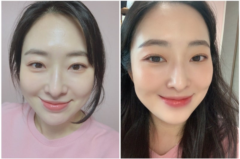 얼굴은 제가 디자인한거에요 ㅎㅎㅎㅎ 웃어서 찍어봤어요. 볼에 살이 좀 있어서 실리프팅+윤곽주사(스테로이드 없음)를 권해주셨어요. 나중에 나이가 들면 더 처질 수 있습니다.