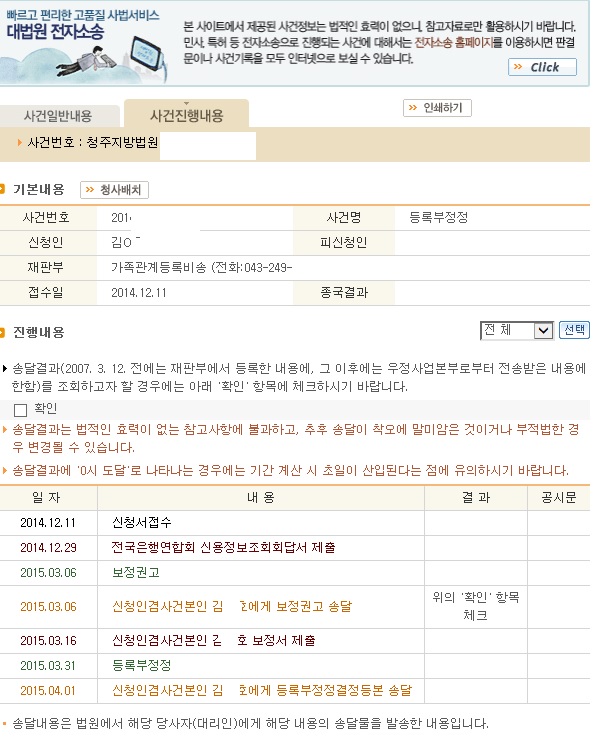 신청을 인정하는 경우 시(구)·읍·면의 장은 지체 없이 처분을 변경하고 그 취지를 법원과 신청인에게 통지합니다.그러나 신청을 인정하지 않을 경우 시(구)·읍·면의 장은 의견을 붙여 지체 없이 그 서류를 법원에 반환합니다. 가정법원은 신청에 이유가 있다고 판단한 경우 시(구)·읍·면의 장에게 상당한 처분을 명하며, 신청에 이유가 없다고 판단한 경우 각하합니다. 가정법원은 신청의 각하 또는 처분을 명하는 재판을 결정으로 하여 시(구)·읍·면의 장 및 신청인에게 송달합니다. 이후 처분에 대해서는 항고를 제기할 수 있습니다.