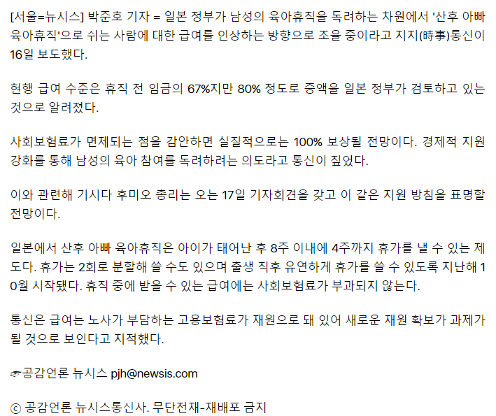 휴직 전 임금의 80% 수준으로 인상하는 방안을 검토 중인 것으로 알려졌다.