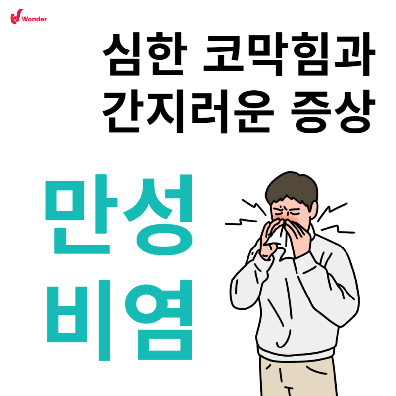 안녕하세요! 원더이비인후과입니다.기침이나 코막힘이 심해서 고생한 경험이 있습니까?그렇다면 만성 비염일 수도 있어요!