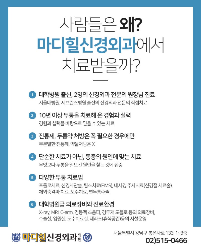 또한 잦은 두통은 경추성 이상으로 발생하는 분들도 많은데 특히 요즘 현대인들은 스마트폰 사용, 지속되는 컴퓨터 업무 환경에서 잘못된 자세를 하는 경우가 많고, 이로 인해 발생한 경추성 두통의 경우도 상당수입니다.이에 반포 본원에서는 두통 체내 원인 진단 개선 과정과 함께 체형적인 문제를 분석하여 추나요법&약침요법 등으로 척추와 경추의 문제를 바로잡을 수 있도록 돕습니다.