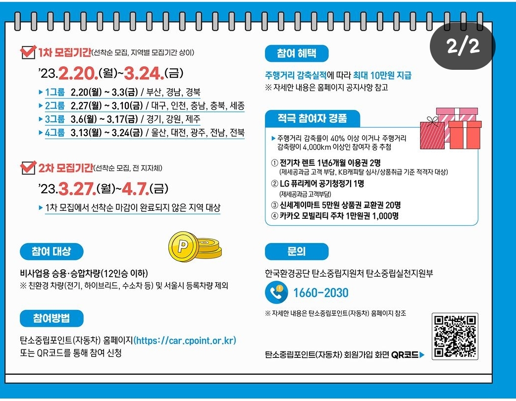 CO2 포인트 제도 2023(자동차) 참가자를 모집합니다.