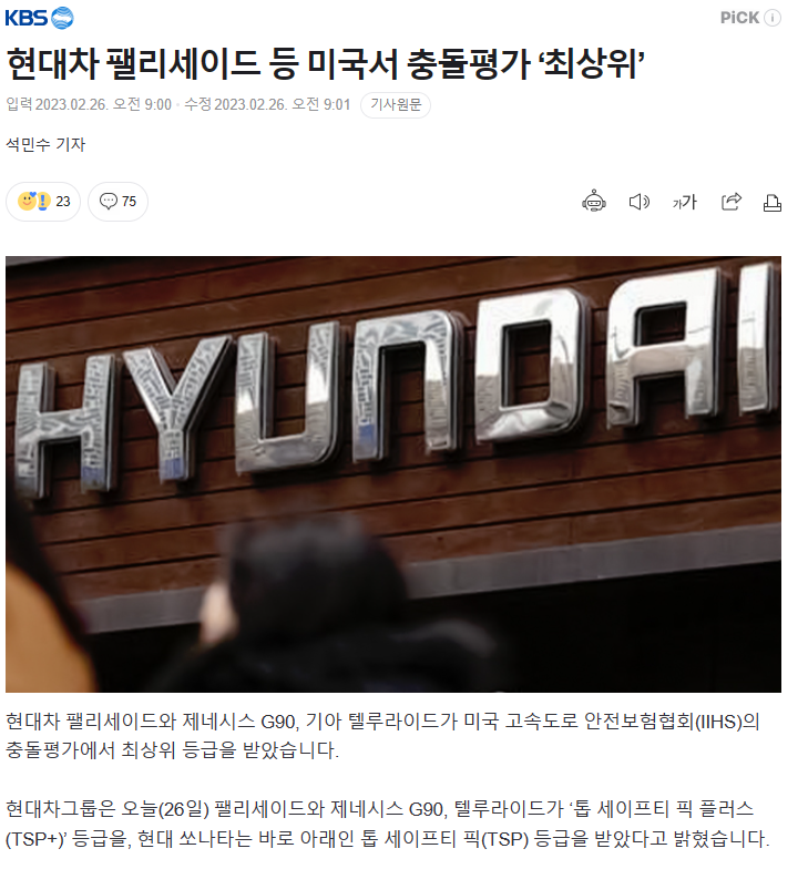 현대 팰리세이드, 제네시스 G90, 기아 텔루라이드가 미국 고속도로안전보험협회(IIHS) 충돌 평가에서 최고 등급을 받았다. 현대차그룹 오늘(26일) 팰리세이드, 제네시스 G90, 텔루라