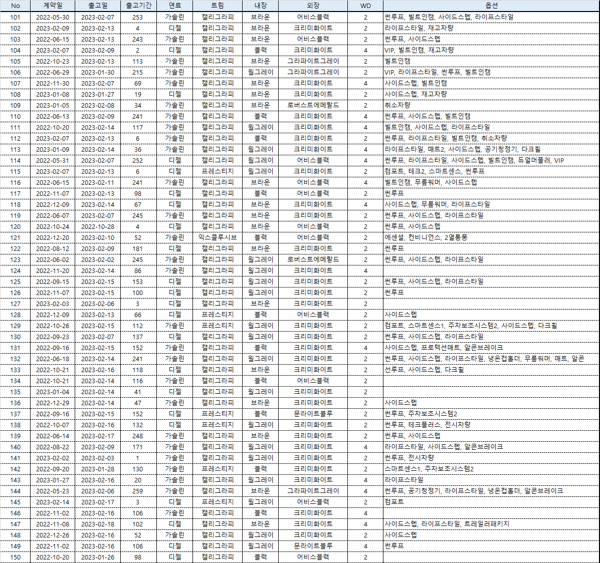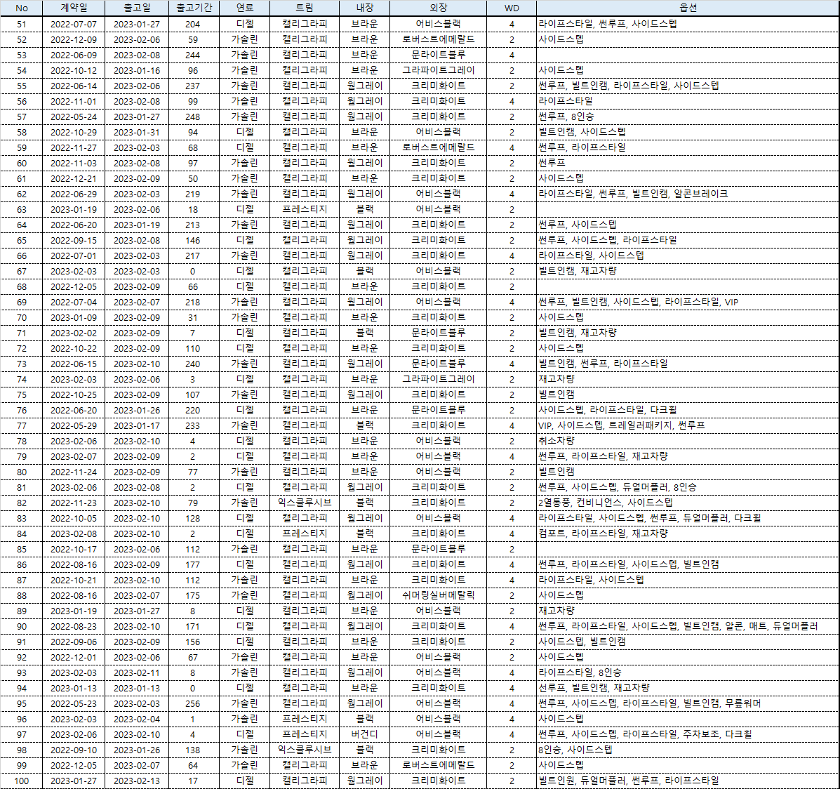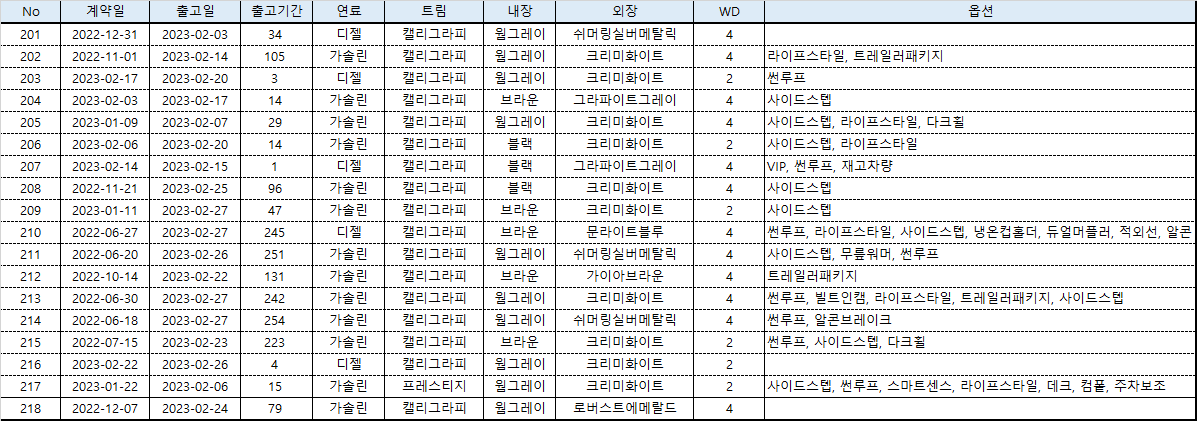 납기는 많이 단축됐지만 경유 가격 상승으로 2022년 말 경유차가 많이 팔리지 않아 판매자들이 할인을 많이 해줬다.