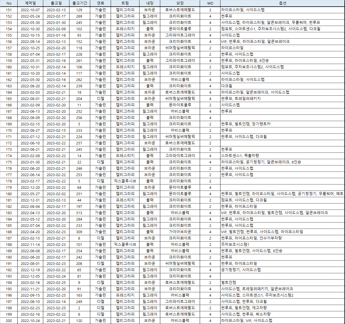 가장 긴 것은 큰 의미가 없는 것 같습니다. 313일은 계약이 F/L로 전환되는 시점이지만, 반도체 수급이 아무리 어려워도 그만큼 오래 방치하기는 어렵다. 보통 200~240일이 가장 긴 대기시간인 것 같고 300일 이상은 차주님 사정으로 연기된 것 같습니다.