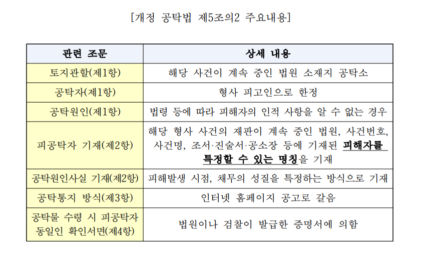 음주운전 사고와 같은 형사사건의 경우 피해자와의 합의를 위해 연락처 등 인적사항에 대해 알아야 합의를 시도할 수 있습니다.그러나 형사 사건은 민사와 달리 피공탁자가 범죄 피해자입니다. 이에 인적사항 확인이 어려운 경우가 많아 불법적인 방법으로 피해자의 인적사항이나 연락처를 파악하고 해당 피해자를 찾아가 강압적으로 합의하거나 협박하는 등 2차 피해가 발생하였습니다.그래서 피해자의 사생활 보호와 피해 보상을 위해 피고인이 피해자의 인적 사항을 몰라도 공탁할 수 있는 기회를 제공하는데 목적이 있습니다.
