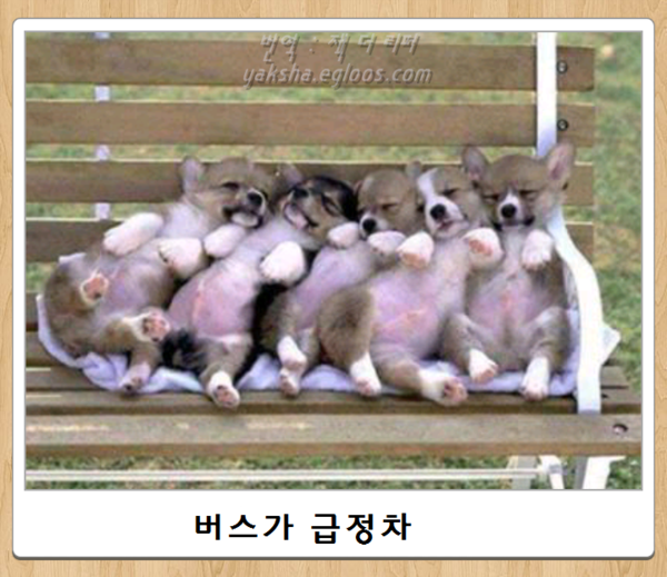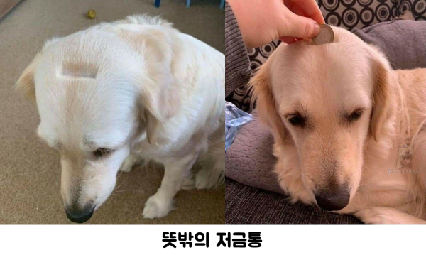 이 안타까운 개의 상황을 웃음으로 승화시키려는 주인의 시선이다.